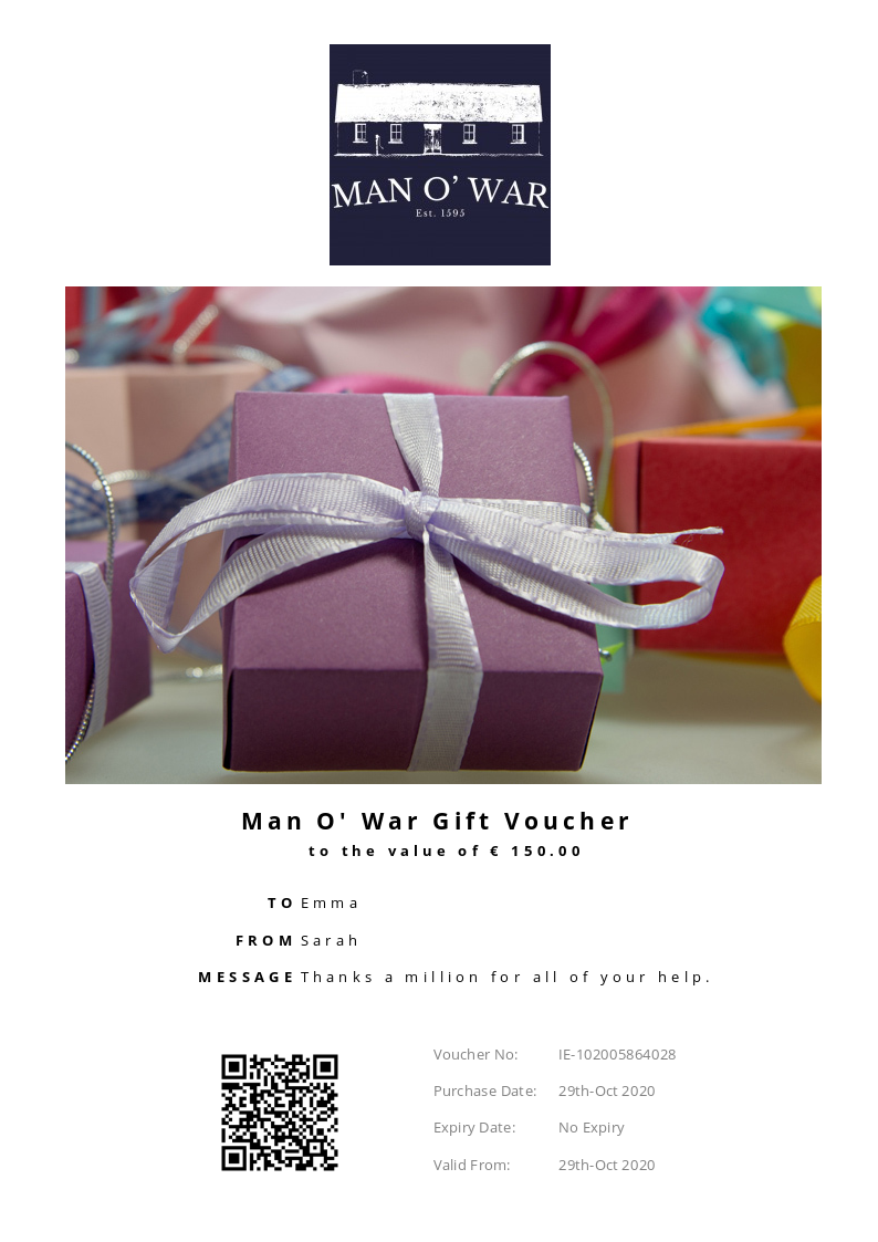Man O' War allows you to purchase instantly printable gift vouchers, special offers and tickets using the Voucher Connect platform.